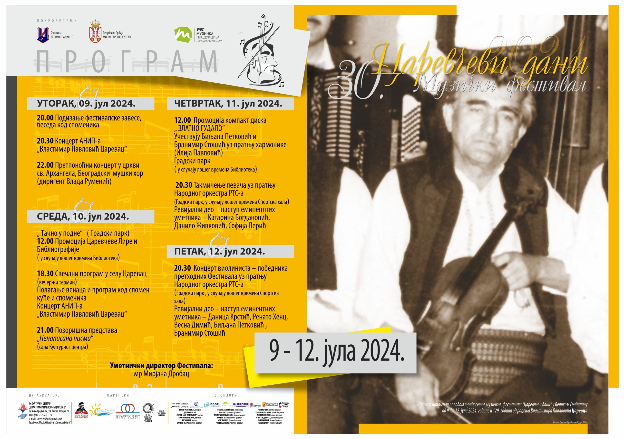 У Великом Градишту ће се по 30. пут одржати „Царевчеви дани“ од 9. до 12. јула, на ком ће традиционално учествовати и Народни оркестар Радио-телевизије Србије под вођством Владе Пановића. Публика ће бити у прилици да ужива у звуцима овог реномираног ансамбла у четвртак, 11. и 12. јула, на Летњој позорници, са почеком у 20.30 часова. 11. јула, ће се одржати такмичење вокалних солиста. У ревијалном делу, који је посвећен уметничком и брачном пару Вера Ивковић и Данило Живковић, наступају Катарина Богдановић и Софија Перић – награђене солисткиње на претходним такмичењима као и Данило Живковић, представник млађе генерације „радио“ певача који је за Звучни архив наше куће снимио значајан број народних и одабраних компонованих песама.