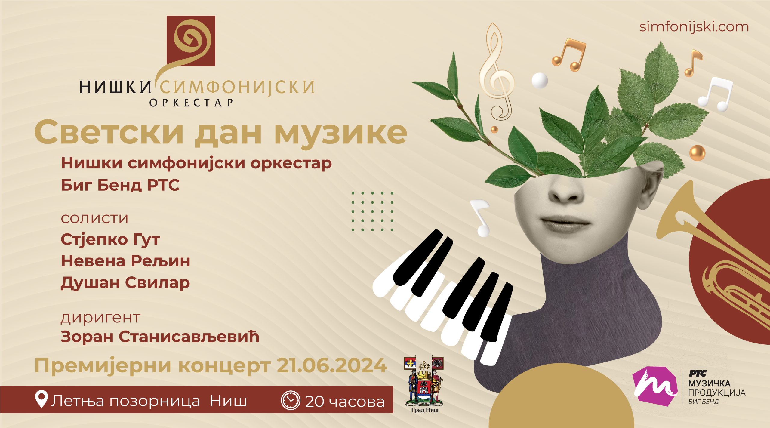 This year, Niš will spectacularly celebrate World Music Day with the Niš Symphony Orchestra and RTS Big Band, with soloists Stjepko Guta, Neven Reljin, Dušan Svilar, and conductor Zoran Stanisavljević.