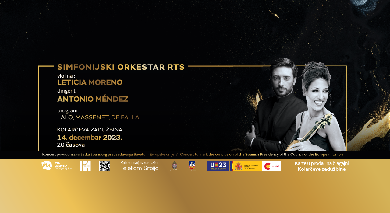 Welcome the winter with the temperamental sound of the RTS Symphony Orchestra! At the concert announced for December 14, in the Kolarac Concert Hall, the “Spanish Symphony” by Édouard Lalo, a famous concertante-symphonic work, will be performed, in which the violinist Leticia Moreno will play as a soloist. Find out why critics call this versatile artist “the most exciting performer of her generation” especially highlighting her charisma and virtuosity. Her numerous performances with famous orchestras brought her standing ovations on world music stages. In addition to the music of Lalo, the audience will have the opportunity to hear the ballet suite from the opera “Le Cid” by Gilles Massenet, as well as the First Suite from the ballet “The Three-cornered Hat” by Manuel de Falla, imbued with the music of Andalusia. The conductor will be Antonio Mendez, a Spanish conductor, one of the most sought-after conductors today, who performs worldwide with leading orchestras. The concert starts at 8:00 p.m., and tickets are on sale at the box office of the Kolarac endowment.