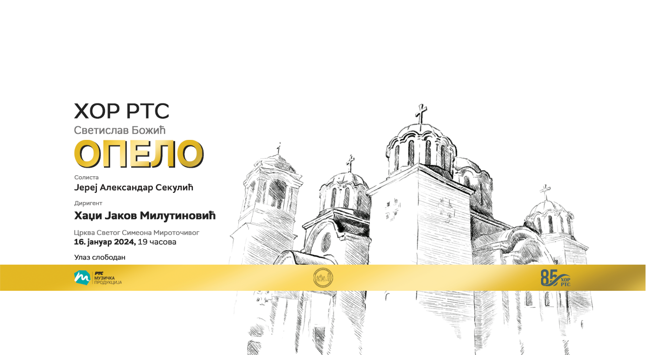The Radio Television of Serbia Choir will begin its jubilee, 85th year, with a concert on January 16, starting at 7 p.m., in the Church of Saint Simeon. The audience will have the opportunity, to hear Opelo in G minor for mixed choir by Svetislav Božić, composed in 1993. The work premiered in Studenica Monastery in 1994 and is dedicated to the painful fates of the Serbian people, tired without number, crucified at all ages in the most brutal ways. The Ton archipelago was born with an immeasurable cry, and with lyrical devotions, it is turned, to the Resurrection, to life and not to death. Jerej Aleksandar Sekulić will perform as a soloist at the concert, and Hadži Jakov Milutinović will conduct the concert.